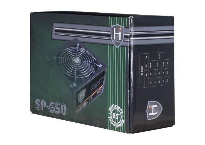 Inter-Tech HIPOWER SP-650. Totaal vermogen: 650 W, AC-ingangsspanning: 100 - 240 V, AC-ingangsfrequentie: 50 - 60 Hz. Motherboard power connector: 20+4 pin ATX, Lengte stroomkabel moederbord: 50 cm, Lengte PCI Express-stroomkabel: 50 cm. Bedoeld voor: PC, Vormfactor van de voeding (PSU): ATX, Geluidsniveau: 35 dB. Kleur van het product: Zwart, Type koeling: Actief, Ventilator diameter: 12 cm. Meegeleverde kabels: AC