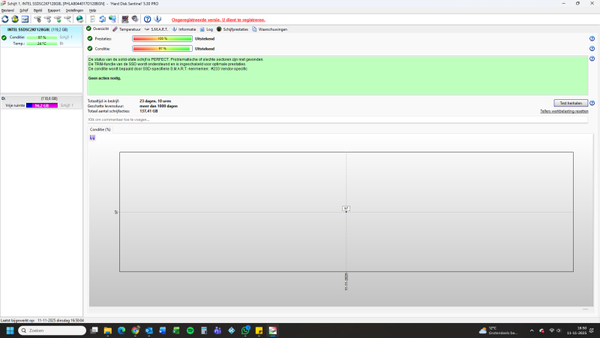 Deze ssd is in een zeer goede staat (zie screenshot hd sentinel)